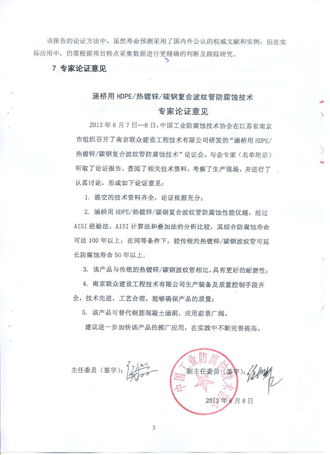 熱熔塑波紋鋼管耐久性論證報告