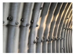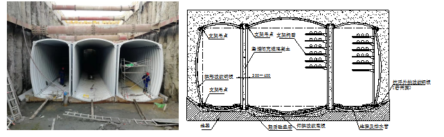 (1)、分片拼裝式波紋鋼結(jié)構(gòu),每片波紋鋼板面積只有2~3平方米,單節(jié)長度沿縱向長度只有1~1.5米,并且要求錯(cuò)縫拼裝,接縫多。