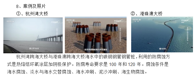 4、壽命長:港珠澳大橋及杭州灣大橋海水中的鋼管樁使用該防腐技術(shù),防腐年限分別是100年和120年。耐海水腐蝕,海水及泥砂沖刷,耐海水與淡水交替腐蝕,耐海洋生物腐蝕,耐打入泥沙時(shí)的樁擊。